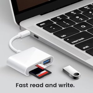 3-in-1 USB-C SD/TF/Micro SD Card Reader – Fast Data Transfer OTG Compatible Adapter for Smartphones & Tablets