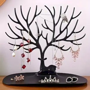 1pc Antler Shaped Jewelry Organizer – Multifunctional Jewelry & Cosmetic Storage Stand with Tray & Hooks