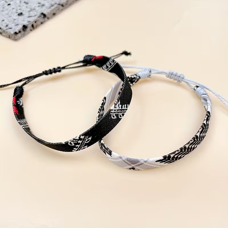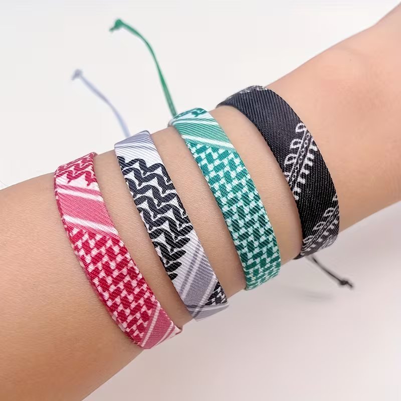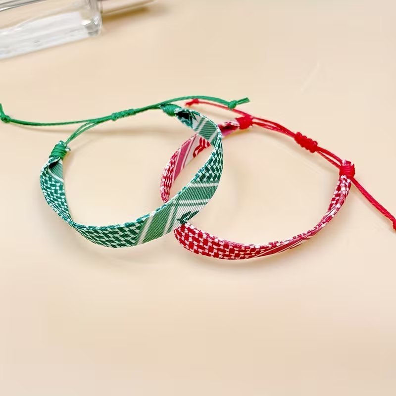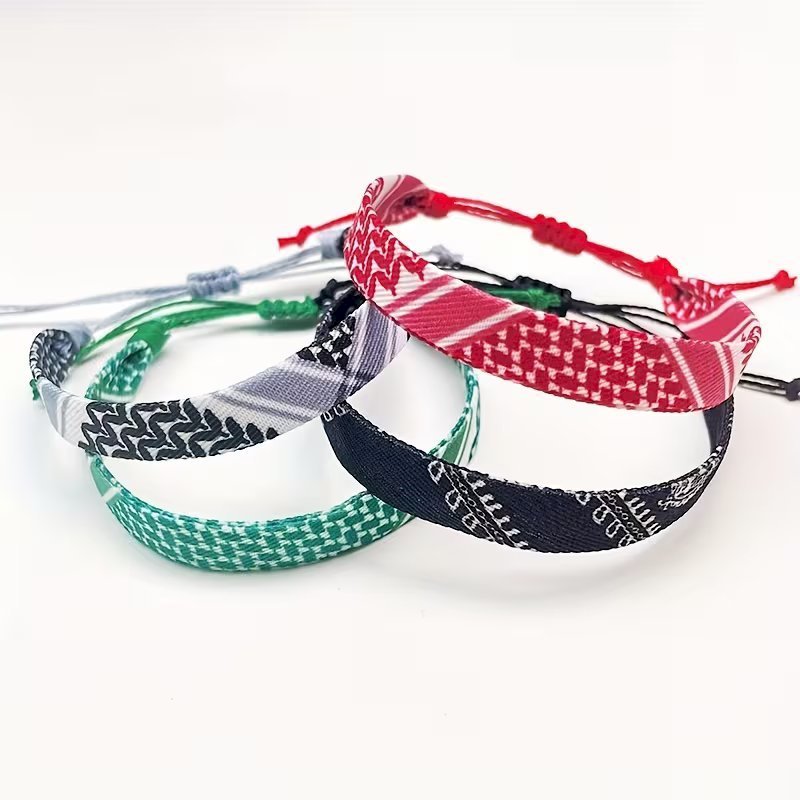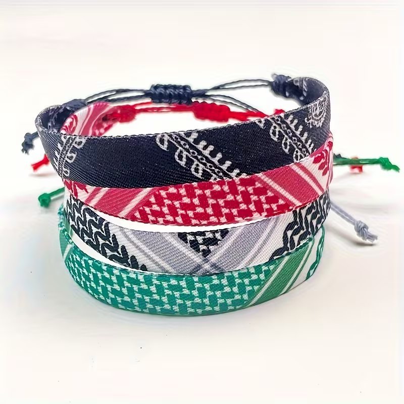 4pcs Braided Ribbon Bracelets – Scarf Style Colorful Geometric Wristbands