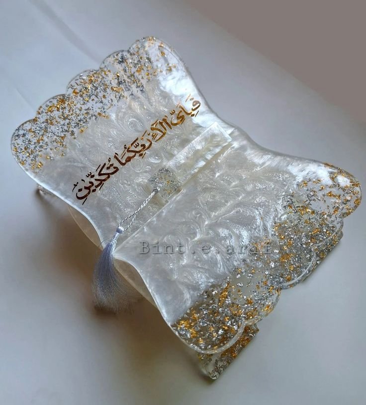 These are stunning, handcrafted, and portable book stands, known traditionally as a Rehal or Rihl, specifically designed to hold the Quran or other religious texts for reading. Each stand is made from high-quality epoxy resin and is a unique piece of functional art.