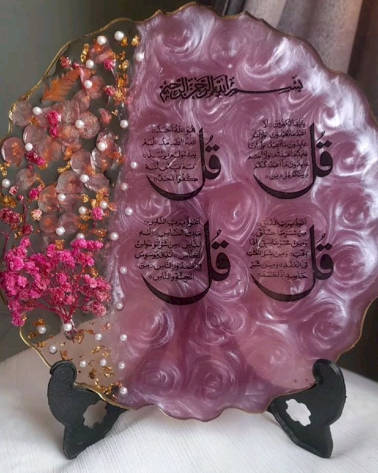 A collection of luxurious, handcrafted resin art plaques featuring exquisite Arabic calligraphy of significant Quranic verses. Each piece is a unique blend of modern epoxy resin techniques with traditional Islamic art, making it a perfect piece of Islamic home décor or a meaningful Muslim gift.