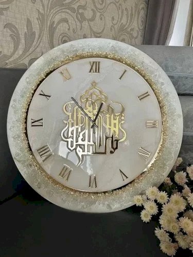 Geode & Marble Styles: These clocks feature mesmerizing agate-inspired designs with dynamic swirls of color (Red/Gold, White/Red/Gold, Marble Beige) and textured edges, often resembling natural geode crystals.