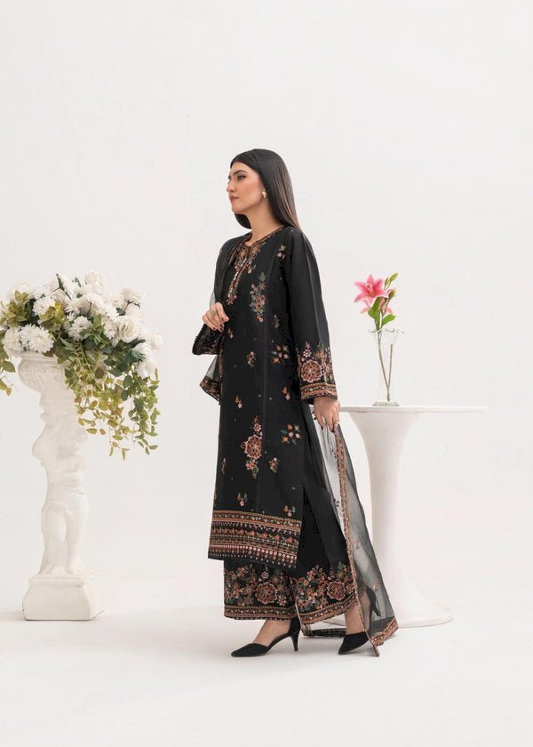 Step into timeless elegance with Nargis 3PCS, an exquisite black embroidered suit from Lifestyle Collections PK designed to reflect grace and sophistication.